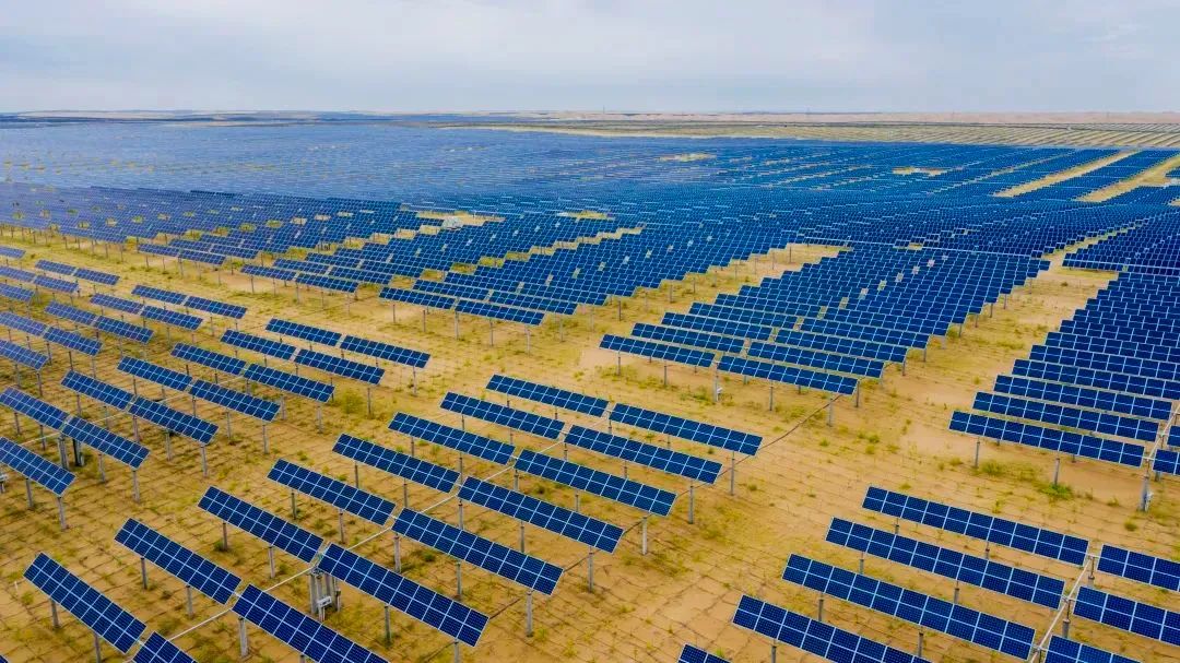 在黃沙漫漫的戈壁灘建設(shè)光伏發(fā)電基地,將炙熱的陽光轉(zhuǎn)化為充沛的綠色動能,讓黃沙變“藍(lán)海”。