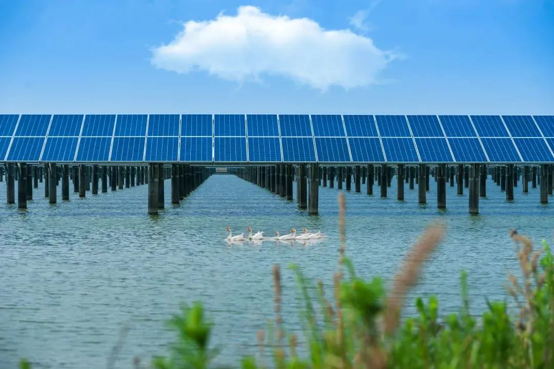 安徽省馬鞍山市當(dāng)涂縣的中廣核當(dāng)涂太白光伏項目是典型的漁光互補(bǔ)電站,通過打樁、抬高支架,光伏板得以在水面上方接收太陽光的照射,進(jìn)而產(chǎn)生電能,廣闊的水面可以用于漁業(yè)養(yǎng)殖,例如養(yǎng)殖魚蝦,或者種植水產(chǎn)農(nóng)作物,光伏+農(nóng)業(yè)優(yōu)勢互補(bǔ),板上光伏發(fā)電,板下漁業(yè)養(yǎng)殖,既提高了單位面積產(chǎn)值,也為當(dāng)?shù)貛砹烁嗟木蜆I(yè)崗位。
