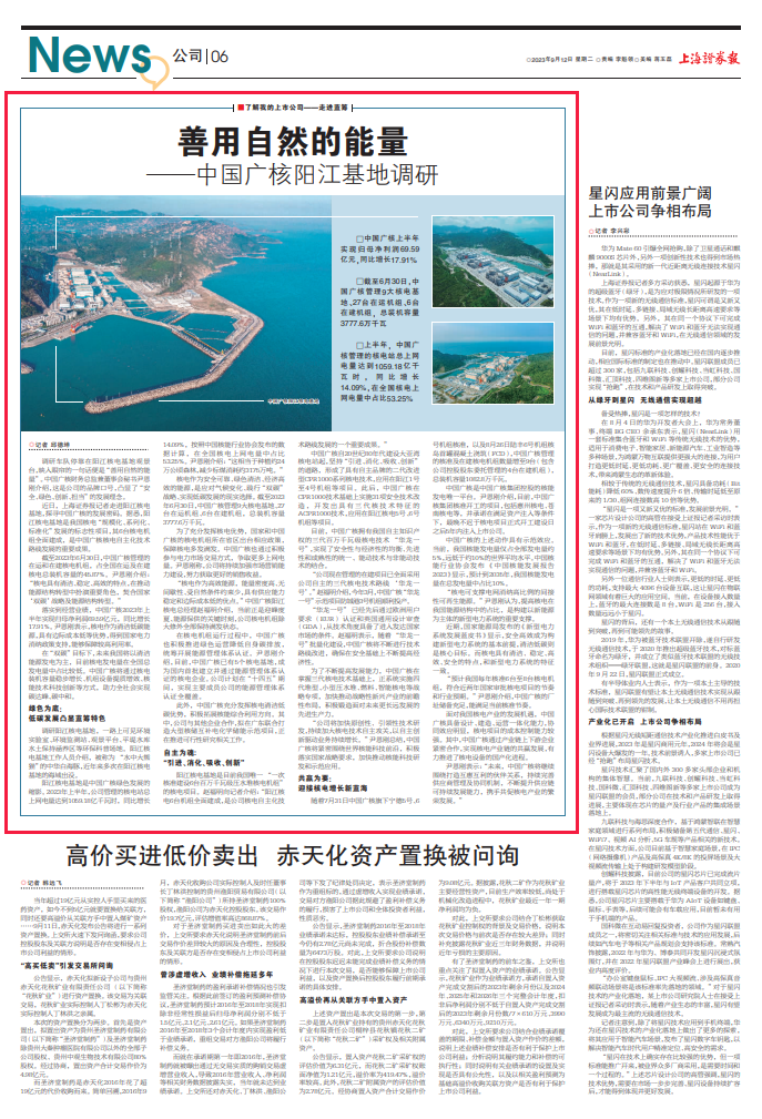 近日,新華社所屬上海證券報記者走進陽江基地,深入探尋中國廣核集團的發(fā)展密碼,并刊發(fā)文章《善用自然的能量——中國廣核陽江基地調(diào)研》。