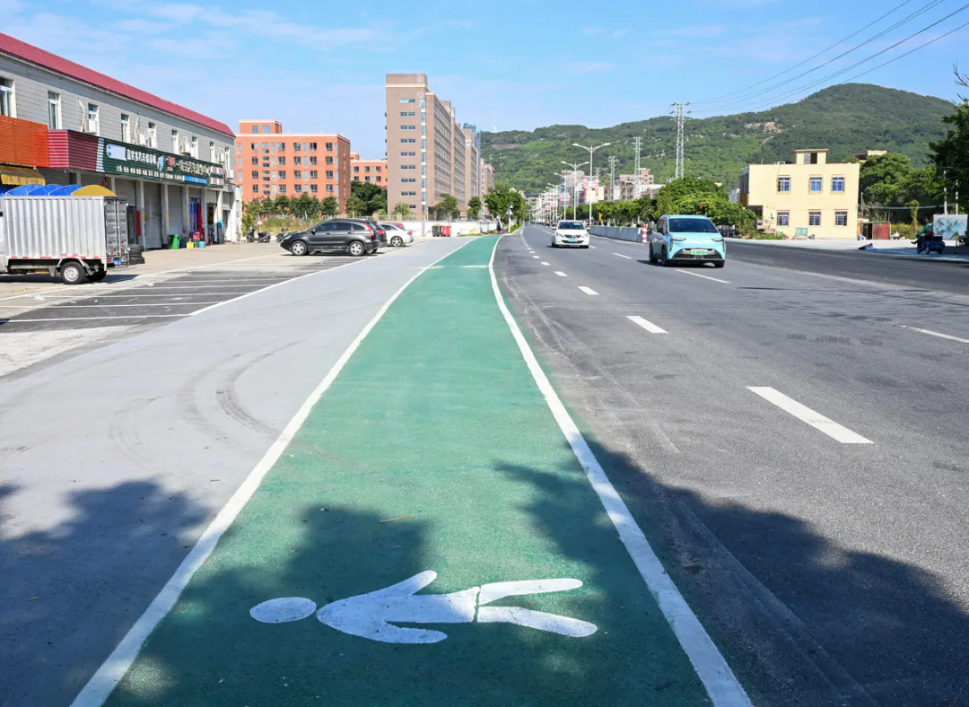 12月3日上午,記者驅(qū)車來(lái)到228國(guó)道東平鎮(zhèn)允泊段,沿途看到小車、共享單車在劃好線的框里有序停放;曾經(jīng)坑洼的路面新鋪上瀝青,道路中央的福建茶樹(shù)枝葉茂密、綠意盎然。兩旁藍(lán)紅相間的彩虹步道干凈整潔;昔日破舊、凌亂的廣告牌統(tǒng)一被換成橘色柵欄式招牌。